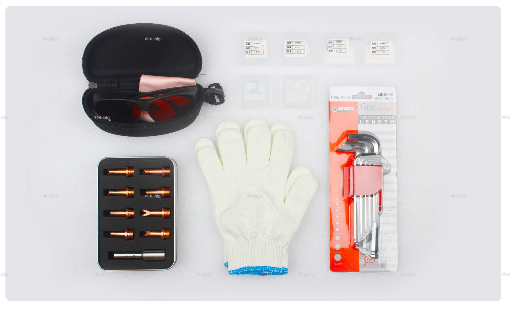 Набор расходных материалов: Включает запасные расходные материалы, такие как лазерные линзы, фильтры, сварочные электроды и другие детали, которые могут быть подвержены износу или требовать замены в процессе эксплуатации.